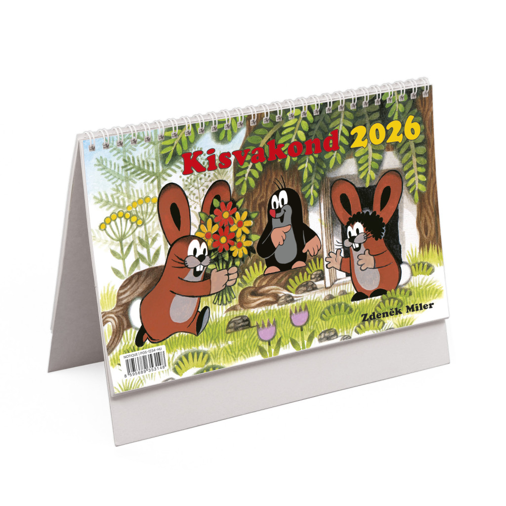 Kisvakond asztali naptár fehér álló kartontáblával - 2026
