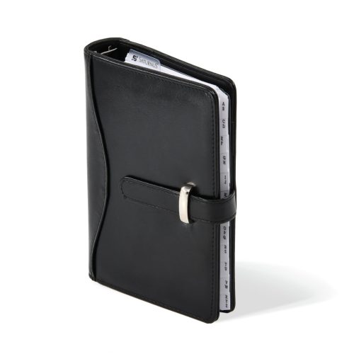 Ez a kalendárium modern és elegáns megjelenésével hívja fel magára a figyelmet. A fényes, bőrhatású műbőr borítás nemcsak stílusos, de tartós is. A praktikus bedugófüles záródásnak köszönhetően könnyedén nyitható és zárható.
